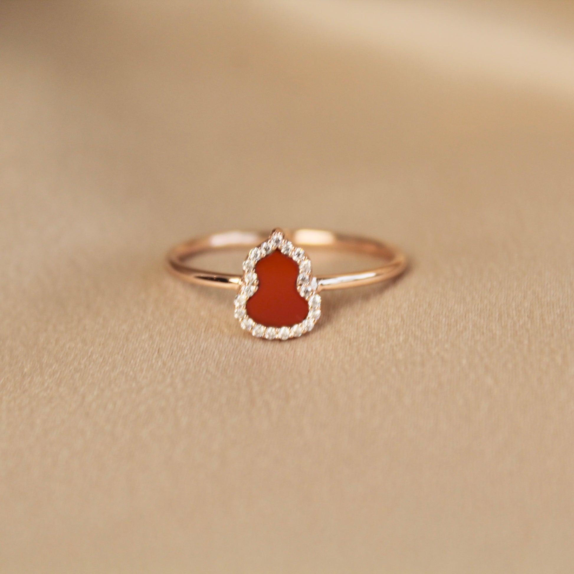 - Materials: 14K Solid Rose Gold, Red Agate, Moissanite Stone