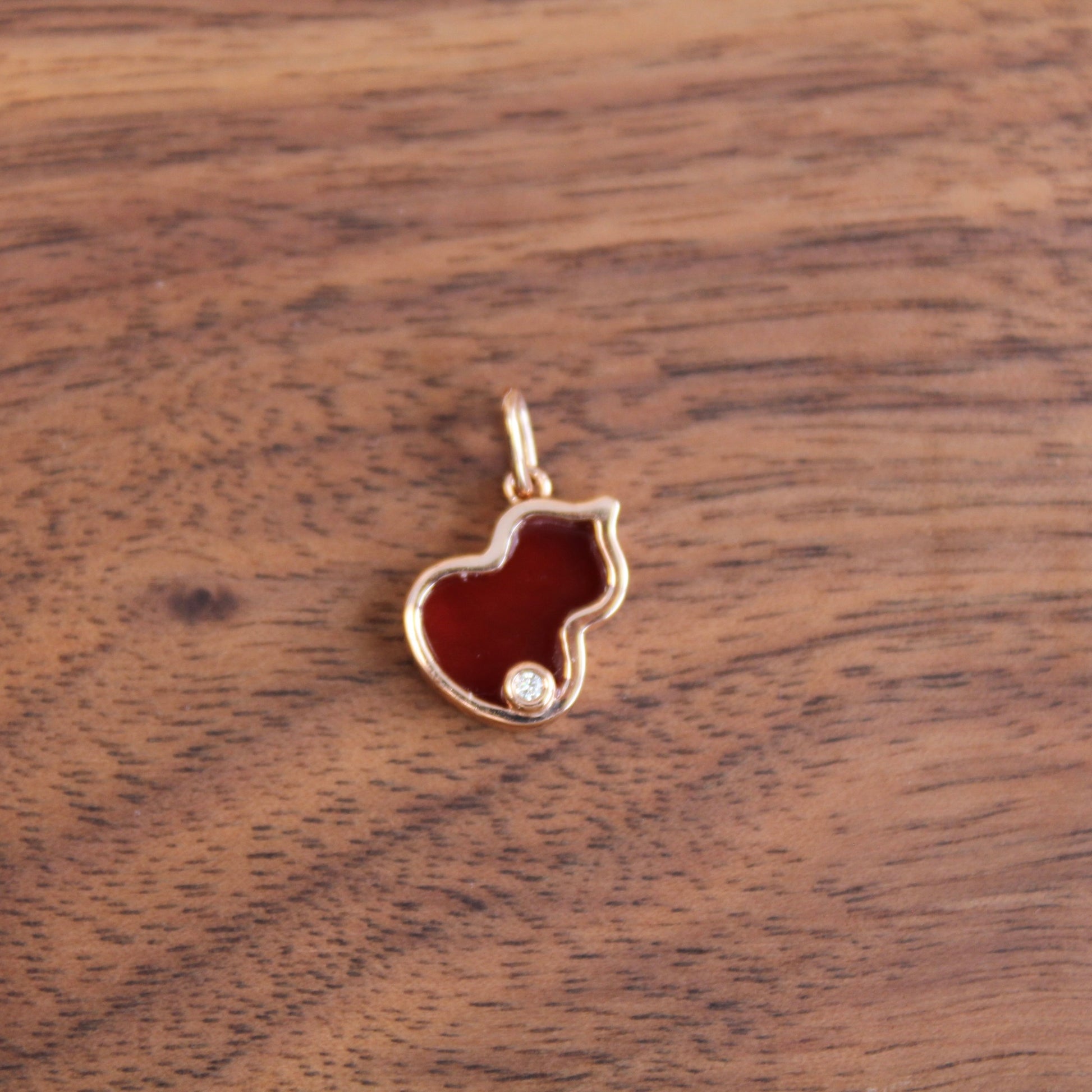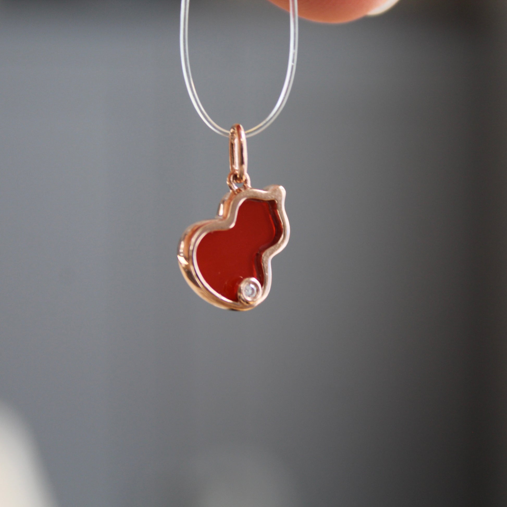 14K Solid Rose Gold Red Agate Hulu Pendant