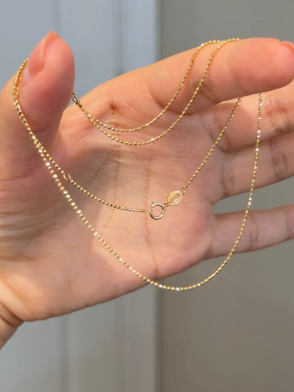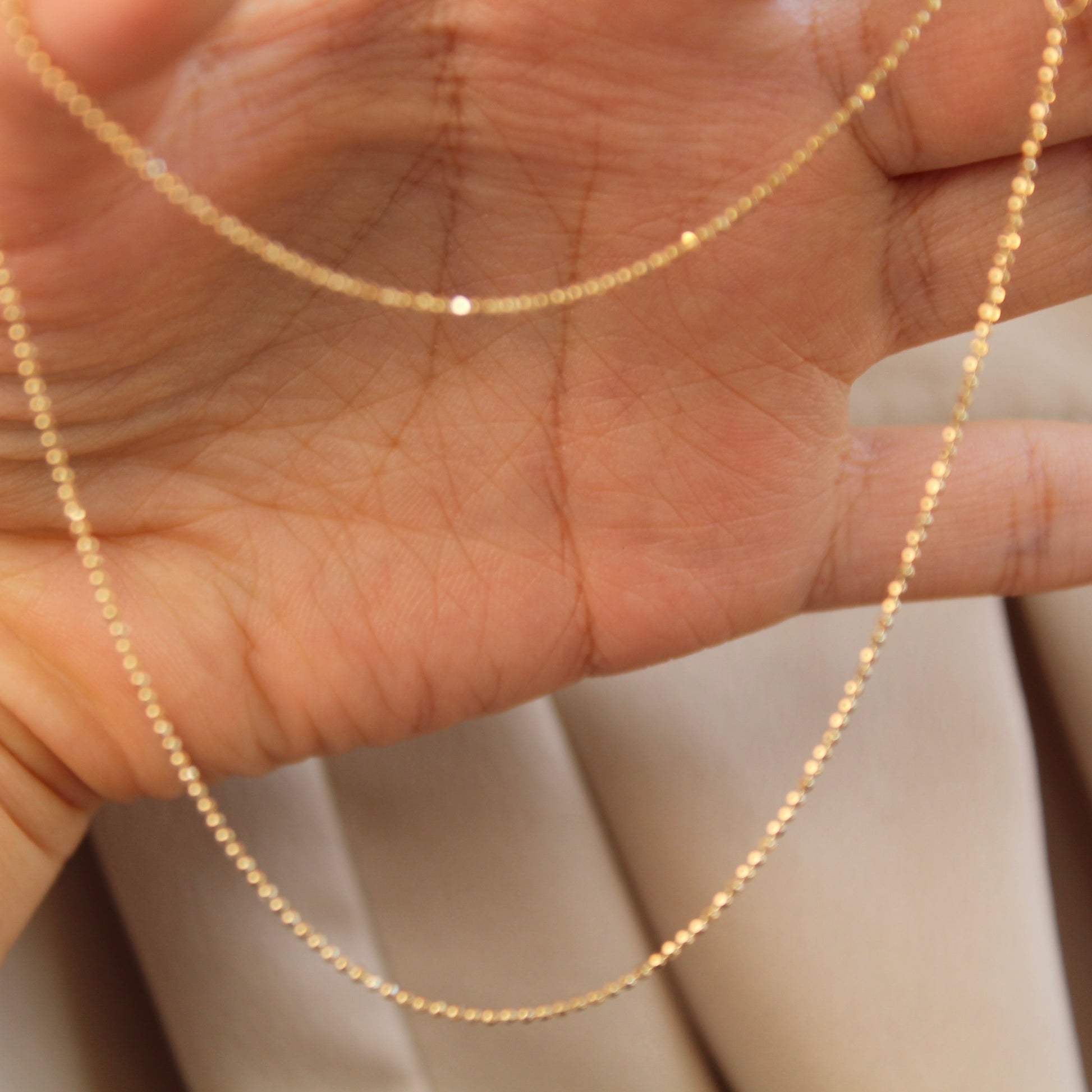 18K Solid Yellow Gold Plain Chain Necklace闪珠链