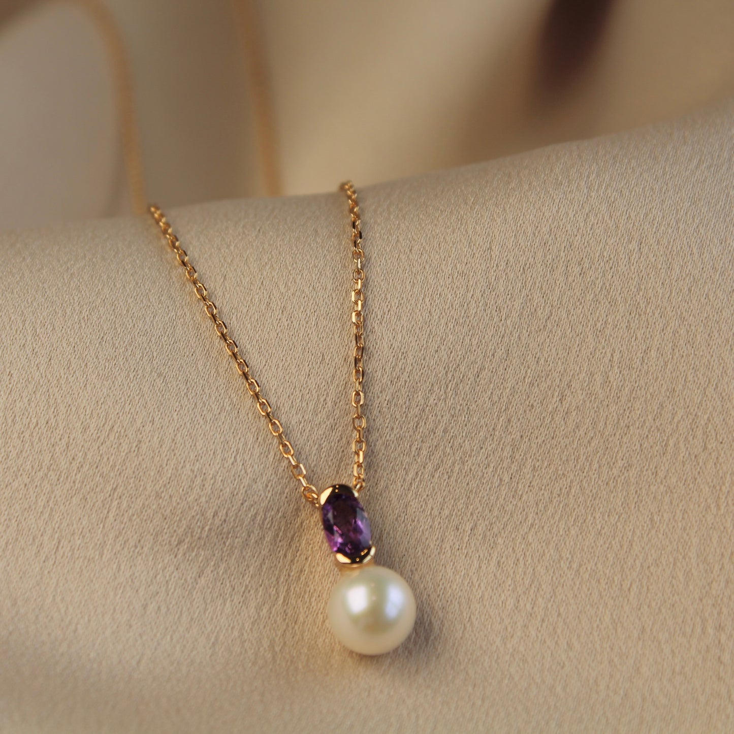 - Materials: Natural Amethyst, Natural Pearl, Sterling Silver