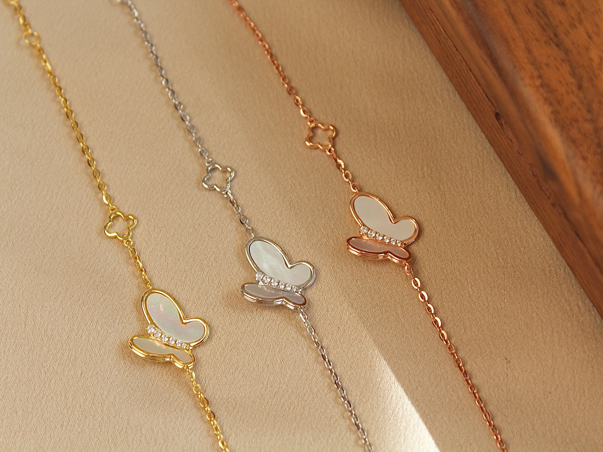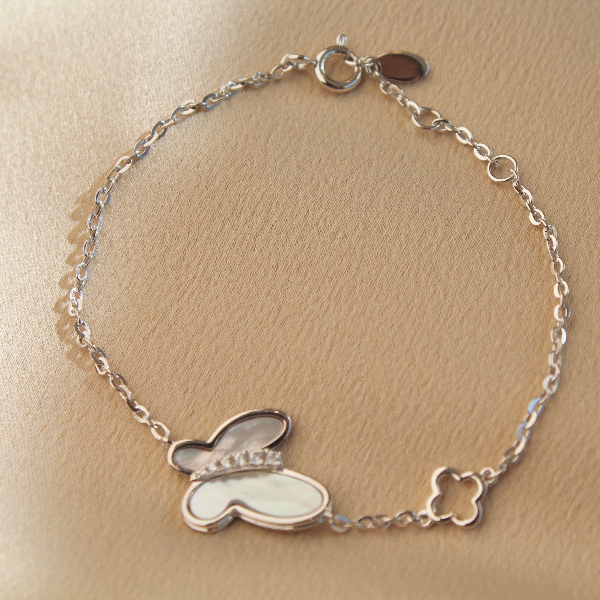 Butterfly Mother of Pearl Bracelet, Silver Color