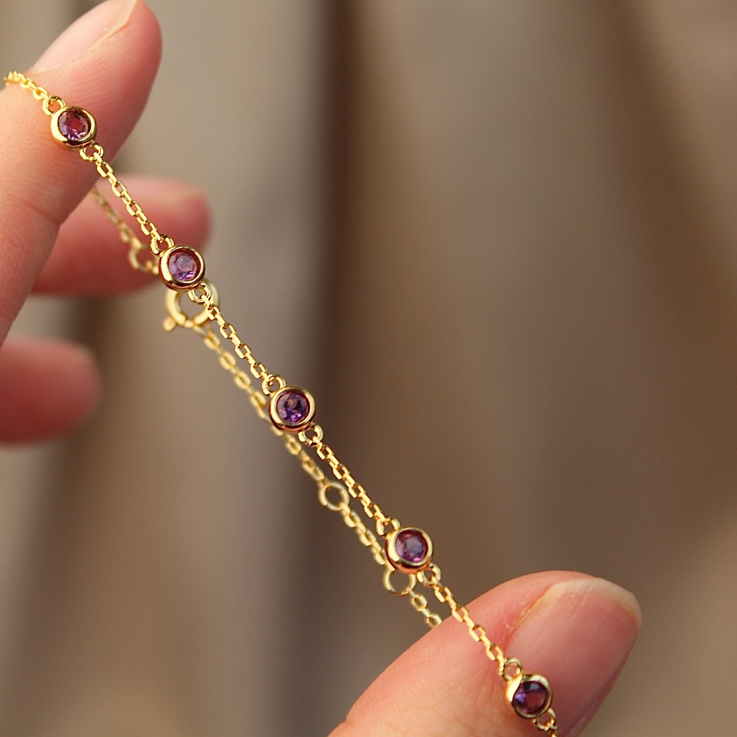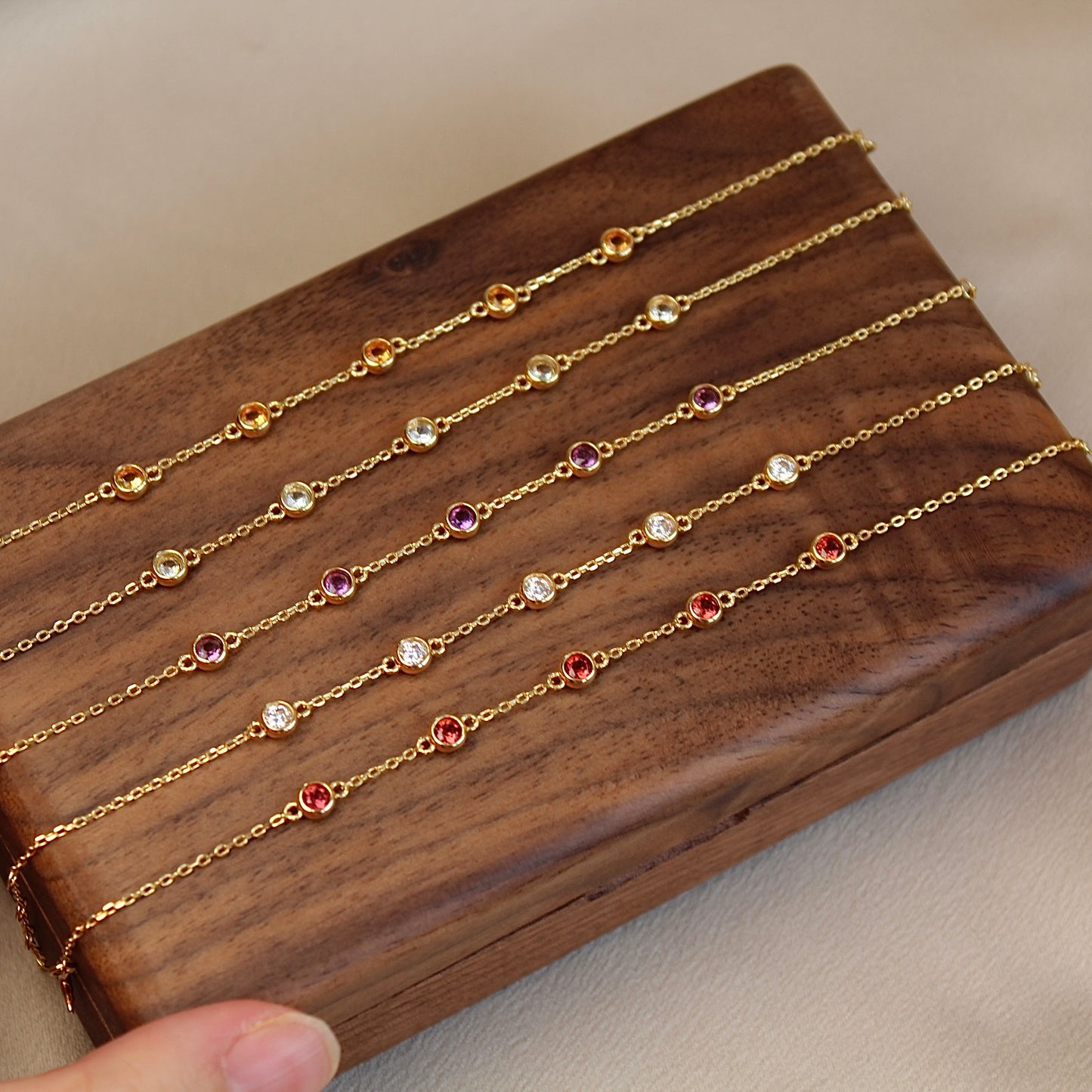 Materials: 14K Gold on Sterling Silver, Multi Gemstones (Natural Amethyst紫水晶, Natural Citrine黄水晶, Natural Aquamarine海蓝宝, Natural Garnet石榴石, Moissanite莫桑钻)