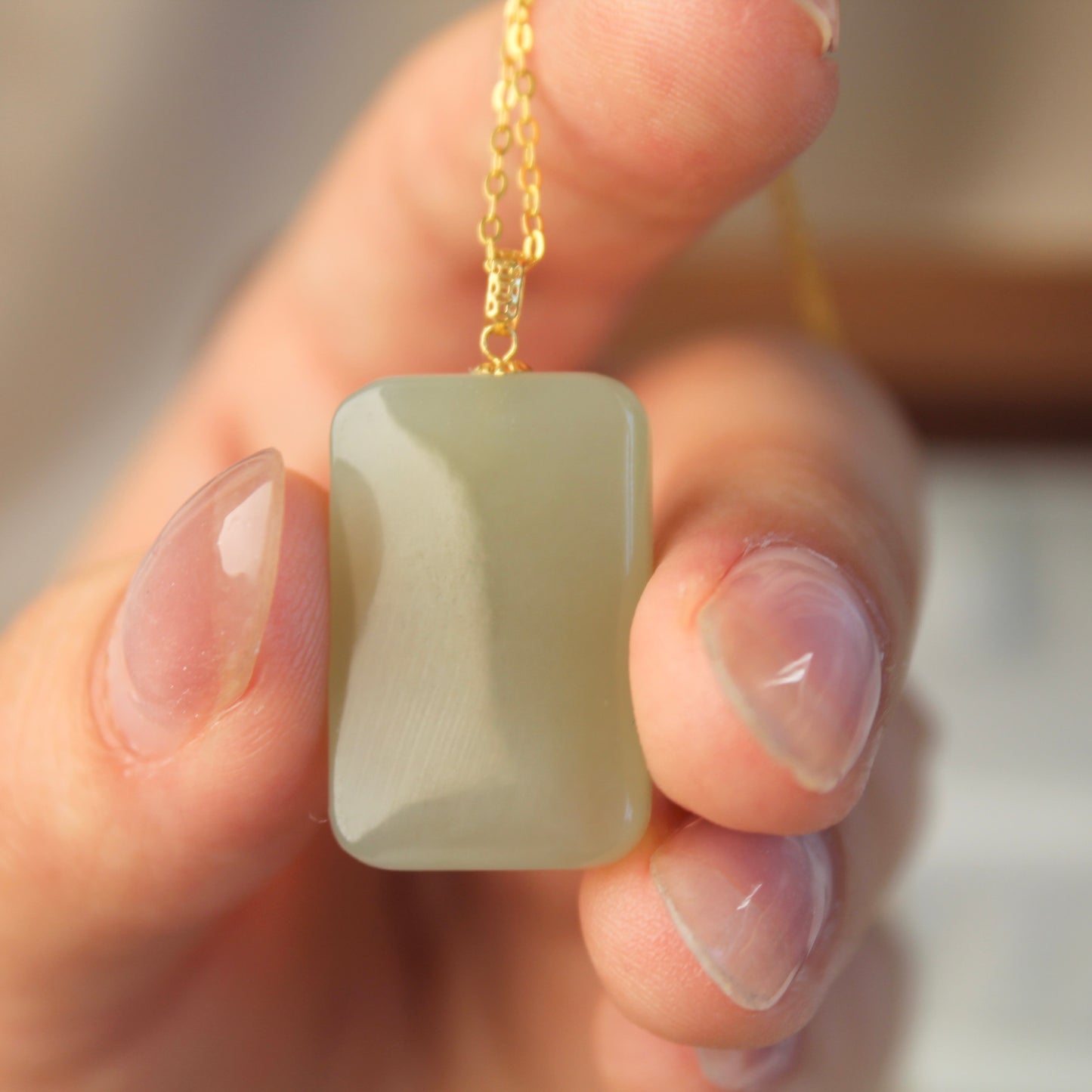 - Materials: Natural Jade, 18K Gold on Sterling Silver.(吊坠扣头为18K纯金!并附送纯银银链)